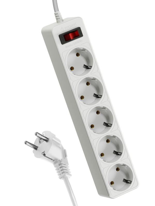 Белый сетевой фильтр 1,8м на 5 гнезд с двумя защитами для гаджетов и дорогой техники – варистор для защиты от «плохого» тока и терморазмыкатель для защиты от перегрузки и замыкания в сети. Сзади специальное крепление – можно повесить на стену. Корпус из негорючего полипропилена, 100% медный кабель ПВС 3х0,75мм (с заземлением). Контактная группа из латуни не деформируется со временем. Максимальная мощность подключения 2200Вт – хватит для нескольких устройств одновременно. 5 лет гарантии