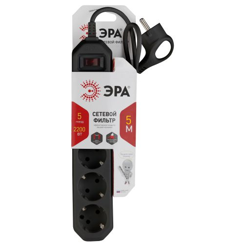 Сетевой фильтр ЭРА USF-5es-5m-B гарантирует высокую степень защиты короткого замыкания. Фильтр имеет терморазмыкатель на 10 А, что защищает подключенные бытовые приборы от перегрузки. Данные характеристики обеспечивают надежную защиту подключенной техники. Современный дом немыслим без большого количества приборов, потому наличие сетевого фильтра, у которого предусмотрено 5 розеток, особенно необходимо. Мощность фильтра составляет 2200 Вт, что обеспечивает надежную бесперебойную работу всех подключенных устройств. На корпусе расположен выключатель с подсветкой, позволяющий быстро задавать фильтру необходимый режим работы. Модель может эксплуатироваться как удобный удлинитель, так как длина провода фильтра составляет 5 м. Сетевые фильтры разрабатываются собственным техническим бюро, проходят проверку на всех этапах производства, что обеспечивает высокое качество продукта.