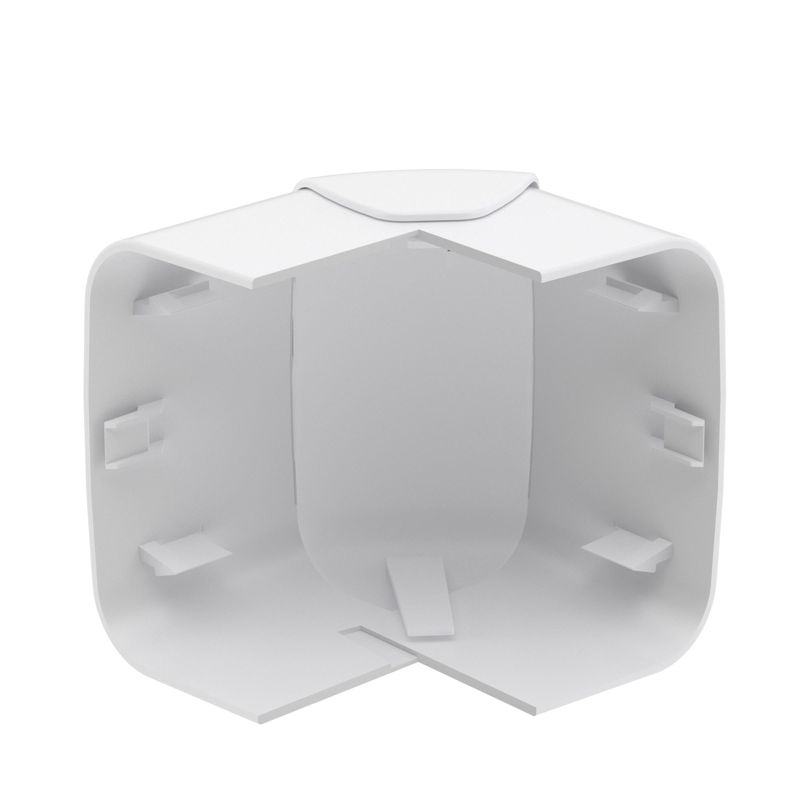 Угол внешний изменяемый (80-120°). Назначение: декоративное оформление мест стыковки кабельных коробов. Характеристики: материал накладки – АБС-пластик; материал базы и разделителей – ПП; встроенные перегородки для разделения внутреннего пространства на секции. Комплект поставки: внешняя декоративная накладка; внутренняя база; разделители (для монтажа на базу). Типоразмер 110х50. Цвет белый