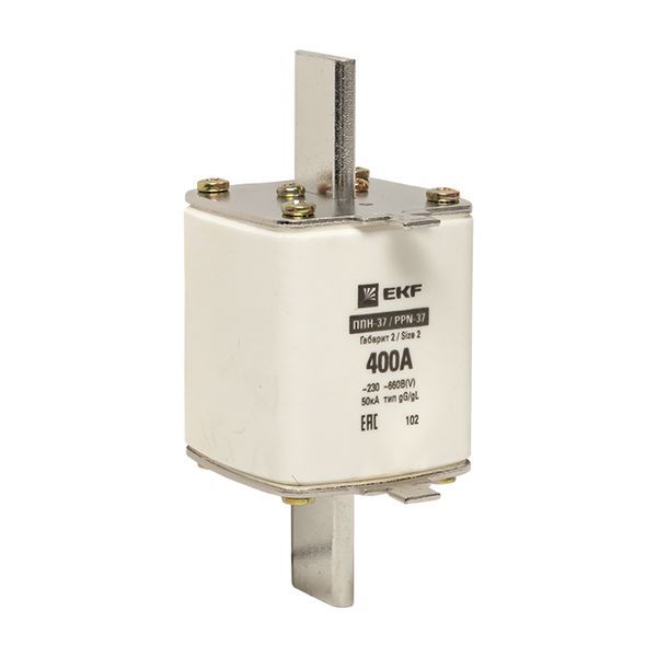 Плавкая вставка ППН-37 400/400А габарит 2 EKF. Предохранители плавкие ППН EKF, укомплектованные плавкими вставками типа gG/gL, предназначаются для защиты кабельных линий и промышленных электроустановок от токов перегрузки и короткого замыкания. Предохранители применяются в электрических сетях переменного тока частотой 50 Гц с напряжением до 660В. Применяются для крепления в распределительных и вводно-распределительных устройствах. Предохранители плавкие ППН могут устанавливаться в основание с держателем, а также в специально предназначенные рубильники. В комплект поставки предохранителей плавких ППН основание с держателем не входит и приобретается отдельно.