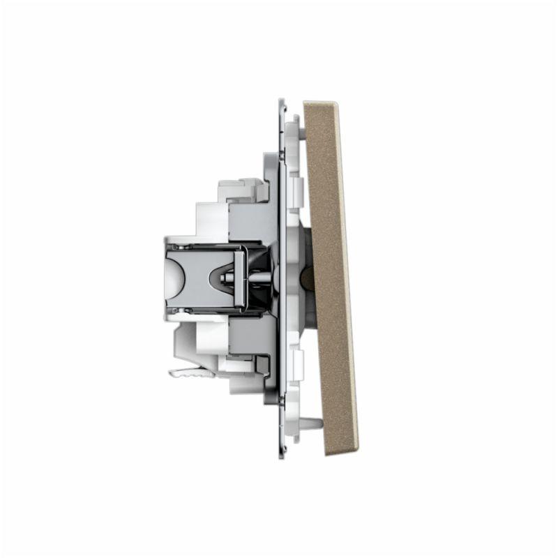 Механизм с быстрозажимными клеммами Systeme Electric серии ArtGallery в цвете шампань выключателя 1-клавишного подходит для сетей 250 В, на ток 10 А. С помощью новых быстрозажимных клемм монтаж стал быстрее. Для подключения не требуется отвертка. Классическое цветовое решение станет изюминкой любого интерьера. Лицевые детали из качественного ABS-пластика, устойчивого к царапинам и УФ-излучению. Лучший промышленный дизайн (по итогам премии Минпромторг 2023).