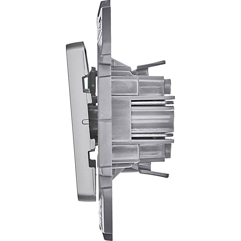 Выключатель одноклавишный скрытого монтажа Inspiria, цвет "Алюминий", номинальный ток 10АХ, напряжение ~250В, безвинтовые зажимы. Устанавливается в жилых и общественных помещениях для управления приборами освещения, вентиляции и т.д.