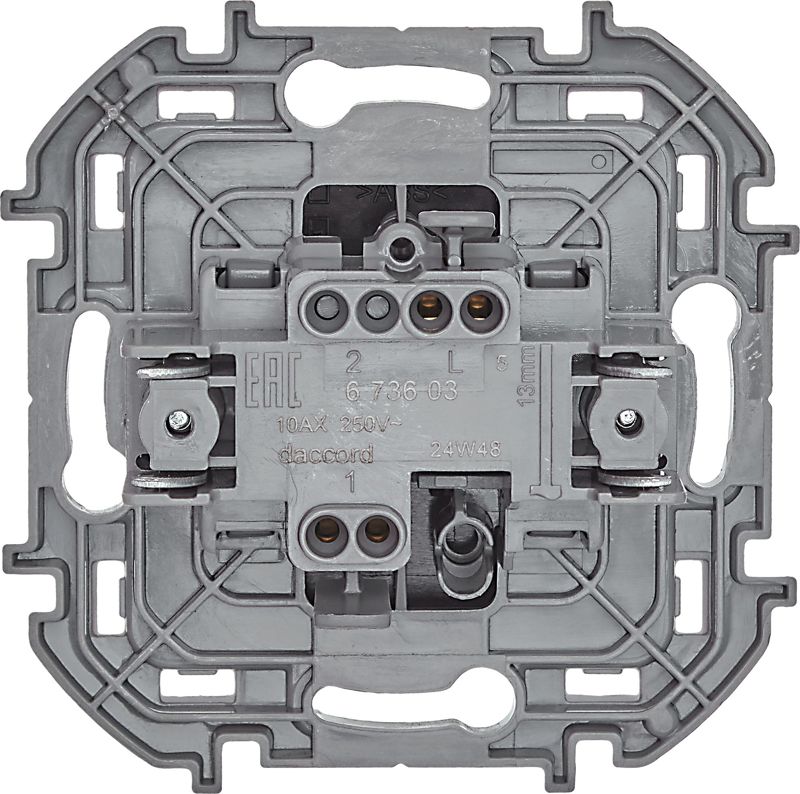 Выключатель одноклавишный скрытого монтажа Inspiria, цвет "Антрацит", номинальный ток 10АХ, напряжение ~250В, безвинтовые зажимы. Устанавливается в жилых и общественных помещениях для управления приборами освещения, вентиляции и т.д.