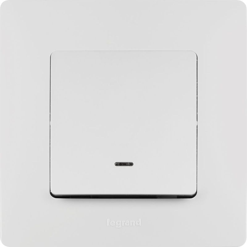 Выключатель с подсветкой одноклавишный ETIKA для скрытого монтажа, номинальный ток 10 А. Используется для управления приборами освещения, вентиляции и т.д.