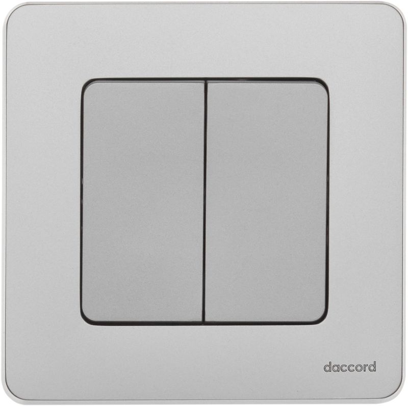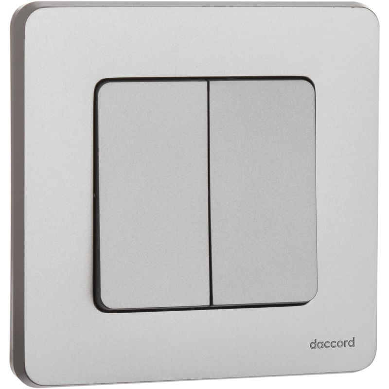 Выключатель двухклавишный скрытого монтажа Inspiria, цвет "Алюминий", номинальный ток 10АХ, напряжение ~250В, безвинтовые зажимы. Устанавливается в жилых и общественных помещениях для управления приборами освещения, вентиляции и т.д. Предназначен для управления двумя электрическими цепями.