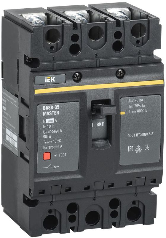 Автоматический выключатель в литом корпусе ВА88 MASTER предназначен для защиты электрических сетей от токов короткого замыкания, токов перегрузки, недопустимых снижений напряжения, а также для проведения тока в нормальном режиме. Автоматические выключатели производятся в 5 типоразмерах, оснащены термомагнитным расцепителем на токи от 16 до 800А и электронным расцепителем на токи от 125 до 800А. Рабочее напряжение 400/690 В. Конструкция автоматического выключателя предусматривает возможность самостоятельной установки дополнительных устройств на объекте заказчика.