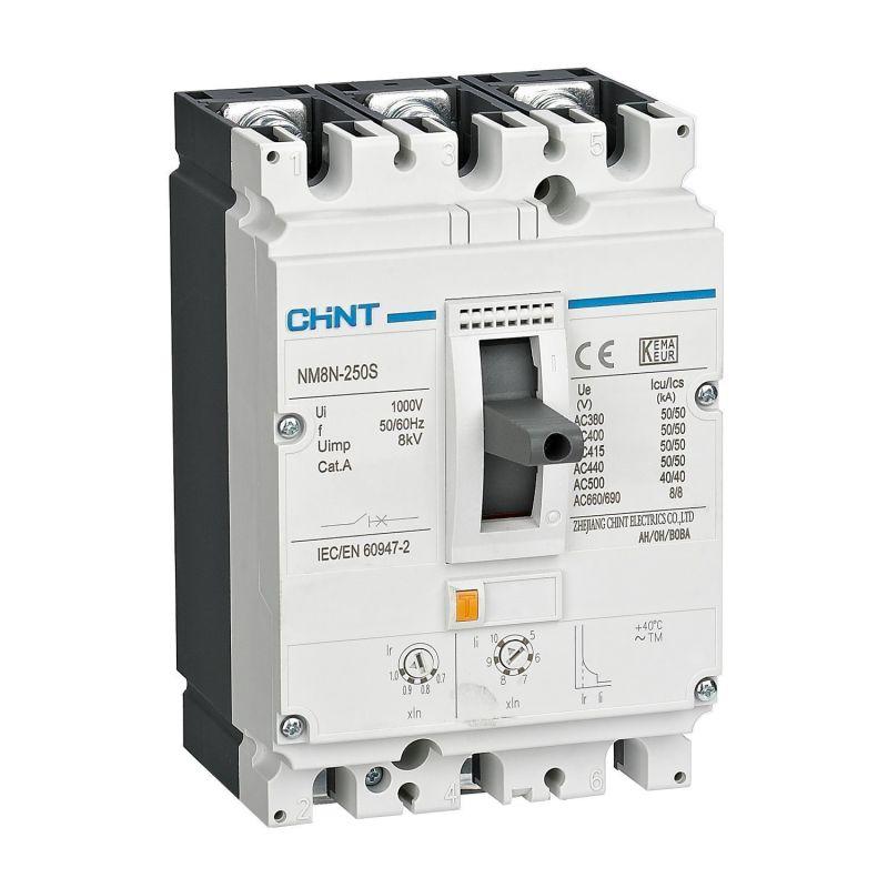 NM8 обладает следующими преимуществами: -Высокая отключающая способность до 150 кА -Дугогаситеьные камеры на полюс -Широкий выбор типоразмеров и номинальных токов -Тепловой и электромагнитный расцепитель – защита от перегрузок с большой выдержкой времени: Ir=0,8-1,0In, мгновенная защита: Ii=5-10In -Электронный расцепитель –защита от перегрузок с большой выдержкой времени: Ir=0,4-1,0In; защита от К.З. с малой выдержкой времени: Isd=1,5~8In; мгновенная защита: Ii=1,5-12In.