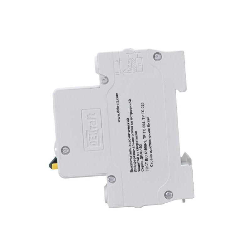 Автоматическими выключателями дифференциального тока серии ДИФ-103 Dekraft; 1N+P; номинальный ток 32 А; ном.дифф. ток 30 мА; тип дифференциального расцепителя - AC; кривая отключения - С; на DIN-рейку. АВДТ (автоматическими выключателями дифференциального тока) сочетают функции автоматического выключателя и УЗО (ВДТ), обеспечивают три вида защиты — от короткого замыкания, перегрузки и возникновения утечки тока (в частности, вследствие прикосновения человека к токоведущим частям). АВДТ с отключающей способностью 4,5кА применяются в распределительных, учётно-распределительных, телекоммуникационных щитах и др. в жилищном, гражданском строительстве, сельском хозяйстве, инфраструктуре объектов промышленности.