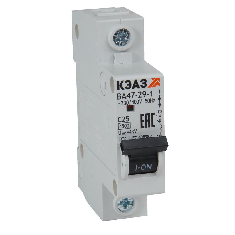 Модульный автоматический 1 полюсный выключатель переменного тока с предельной коммутационной способностью при переменном токе 4.5 кА на номинальный ток 10 А .