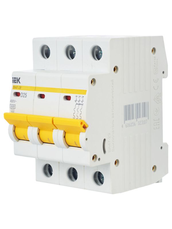 Автоматические выключатели ВА47-29 предназначены для защиты распределительных и групповых цепей, имеющих различную нагрузку: – электроприборы, освещение – выключатели с характеристикой В, – двигатели с небольшими пусковыми токами (компрессор, вентилятор) – выключатели с характеристикой C, – двигатели с большими пусковыми токами (подъемные механизмы, насосы) – выключатели с характеристикой D. Автоматические выключатели ВА47-29 рекомендуются к применению в вводно-распределительных устройствах для жилых и общественных зданий.