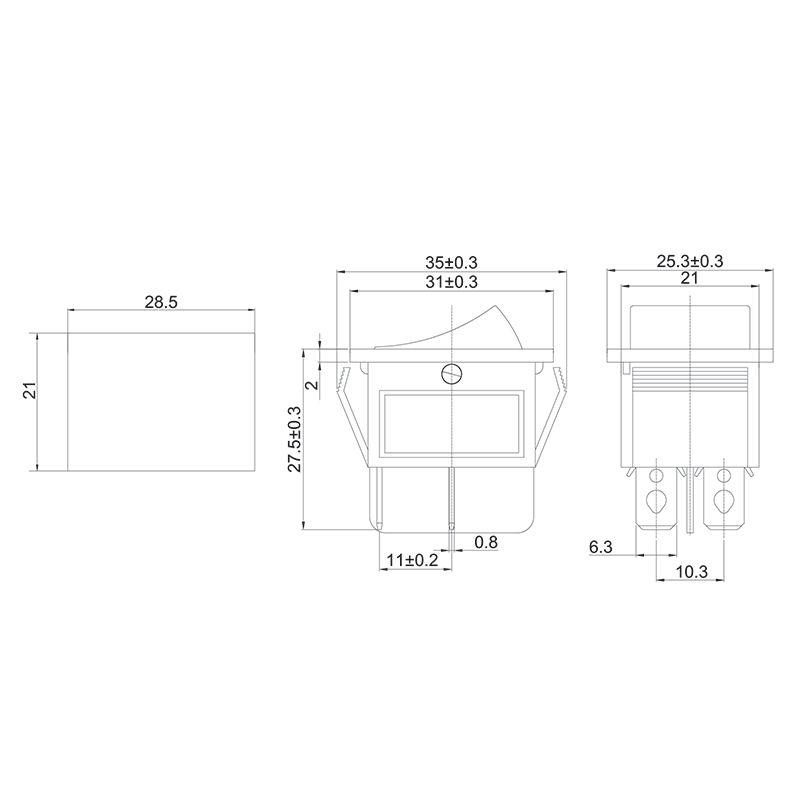 Клавишный выключатель ON-OFF предназначен для коммутации электрических цепей. Используется для включения и выключения различного электрооборудования: сетевых фильтров и удлинителей, звукового оборудования, электроустановок на производстве и в автомобиле. Имеет два положения: принцип работы основан на перемещении клавиши в одну из позиций. Для переключения требуется приложить некоторое усилие. Монтаж осуществляется без применения винтов на плоских панелях толщиной от 0,8 до 3 мм. Контакты подключаются либо плоской клеммой, либо с помощью пайки. Предельное напряжение: 1500 В (АС) не более 1 минуты. Контактное сопротивление: не более 35 мОм.