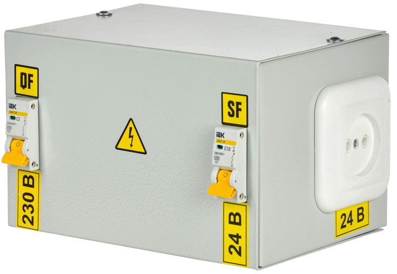 Предназначены для питания местного или ремонтного освещения, а также для подключения переносных светильников и инструмента. Ящики ЯТП имеют разборный металлический корпус, внутри которого установлены: - однофазный понижающий трансформатор ОСО-0,25 мощностью 250 Вт; - автоматические выключатели ВА47-29; - штепсельная розетка.